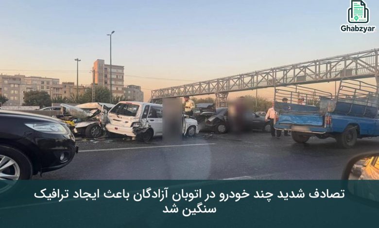 تصادف شدید چند خودرو در اتوبان آزادگان باعث ایجاد ترافیک سنگین شد