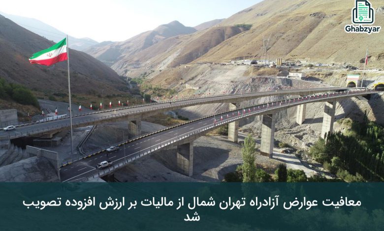 معافیت عوارض آزادراه تهران شمال از مالیات بر ارزش افزوده تصویب شد