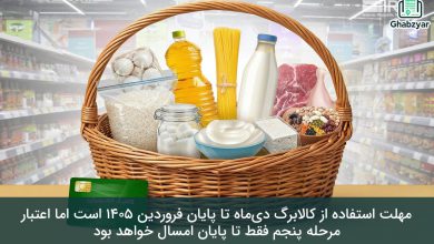 مهلت استفاده از کالابرگ دیماه تا پایان فروردین ۱۴۰۵ است اما اعتبار مرحله پنجم فقط تا پایان امسال خواهد بود